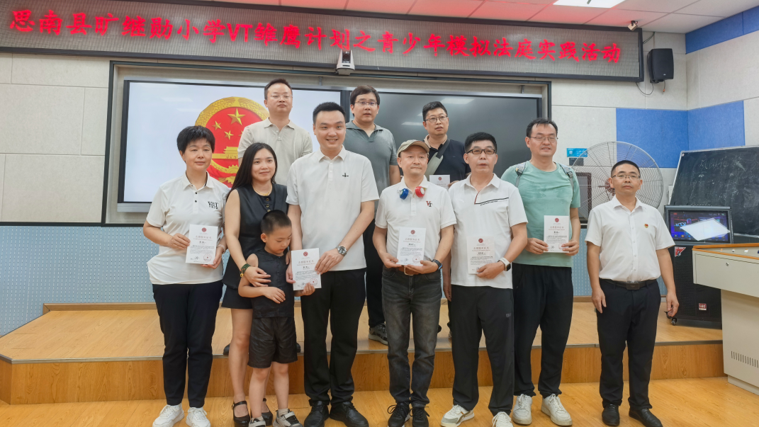 次日,一行人前往贵州省铜仁市思南县旷继勋小学,参加由万商天勤公益委员会、上海办公室与上海大丰公益基金会共同发起的学习设施捐赠活动。满载心意的物资传递温暖与关怀,点亮孩子们的求知之路。现场还观看了由学生担任控辩审三方的模拟法庭,让法治的种子在童心中悄然萌芽。随后,众人循乌江而行,于山水之间回望历史,感悟军民情深,重温革命岁月中的艰苦奋斗,让红色精神在行走中沉淀。