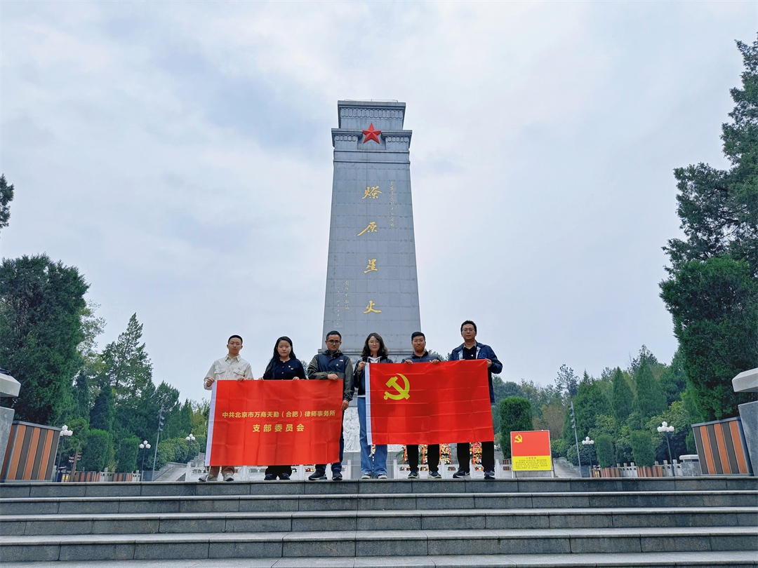 为深入学习贯彻习近平新时代中国特色社会主义思想,赓续红色血脉,凝聚奋进力量。近日,万商天勤合肥办公室党支部组织全所律师,赴中国革命重要策源地、人民军队重要发源地——安徽省金寨县、霍山县,开展主题党日活动。