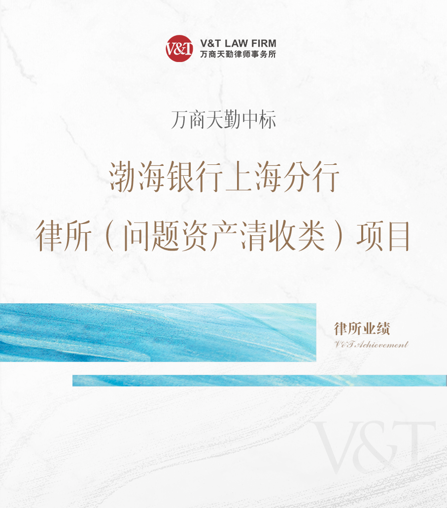 近日,万商天勤上海办公室陈凯律师、孔慧君律师、侯兰兰律师团队凭借其在银行与金融、争议解决领域的专业优势和丰富的实务经验,成功中标渤海银行股份有限公司上海分行律师事务所(问题资产清收类)项目。