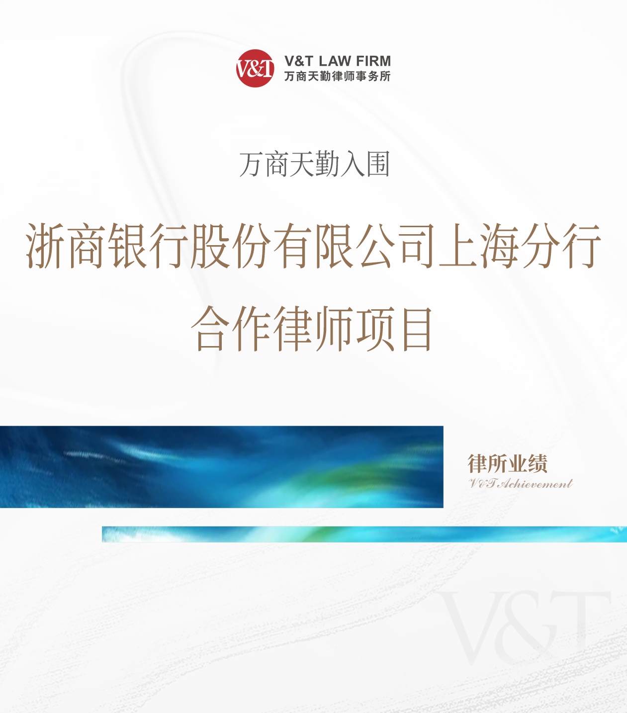 近日,万商天勤上海办公室凭借在银行与金融、争议解决领域的专业优势和丰富的实务经验,成功入围浙商银行股份有限公司上海分行合作律师项目。