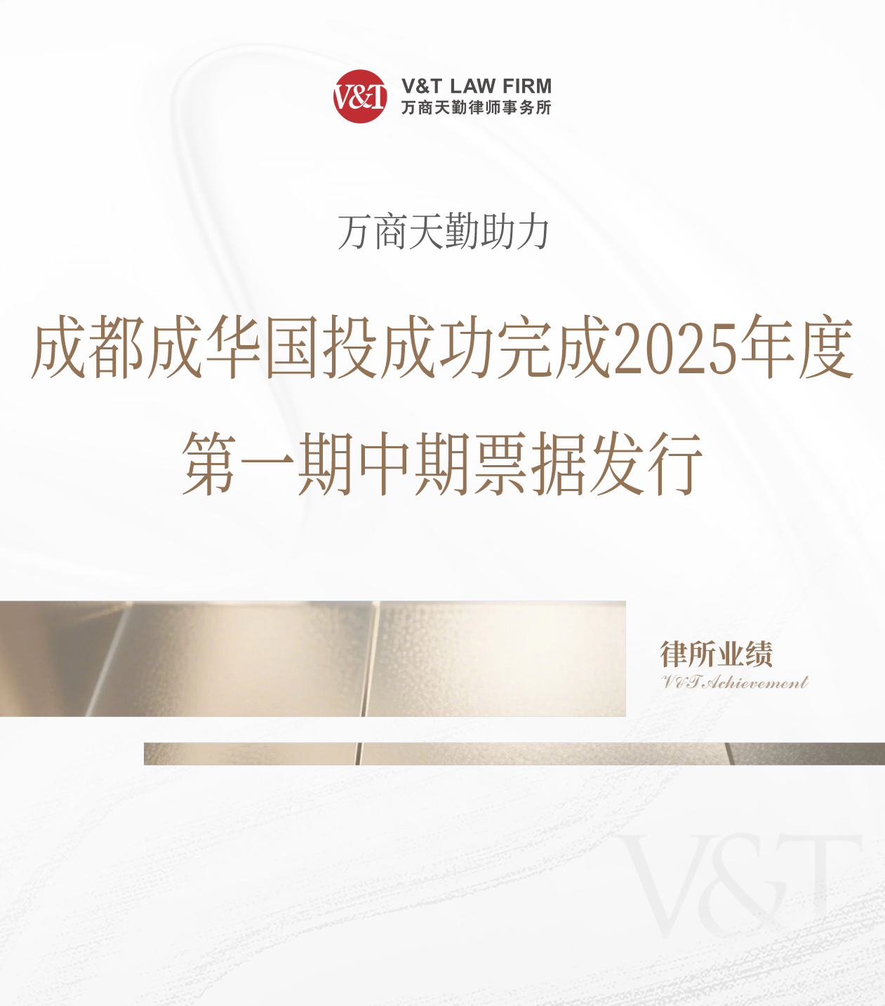 近期,由万商天勤成都办公室合伙人郭崇甫律师团队主办,团队李怡潺律师、吕薇潇律师具体经办的成都成华国资经营投资有限责任公司2025年度第一期中期票据(可持续挂钩)成功发行。