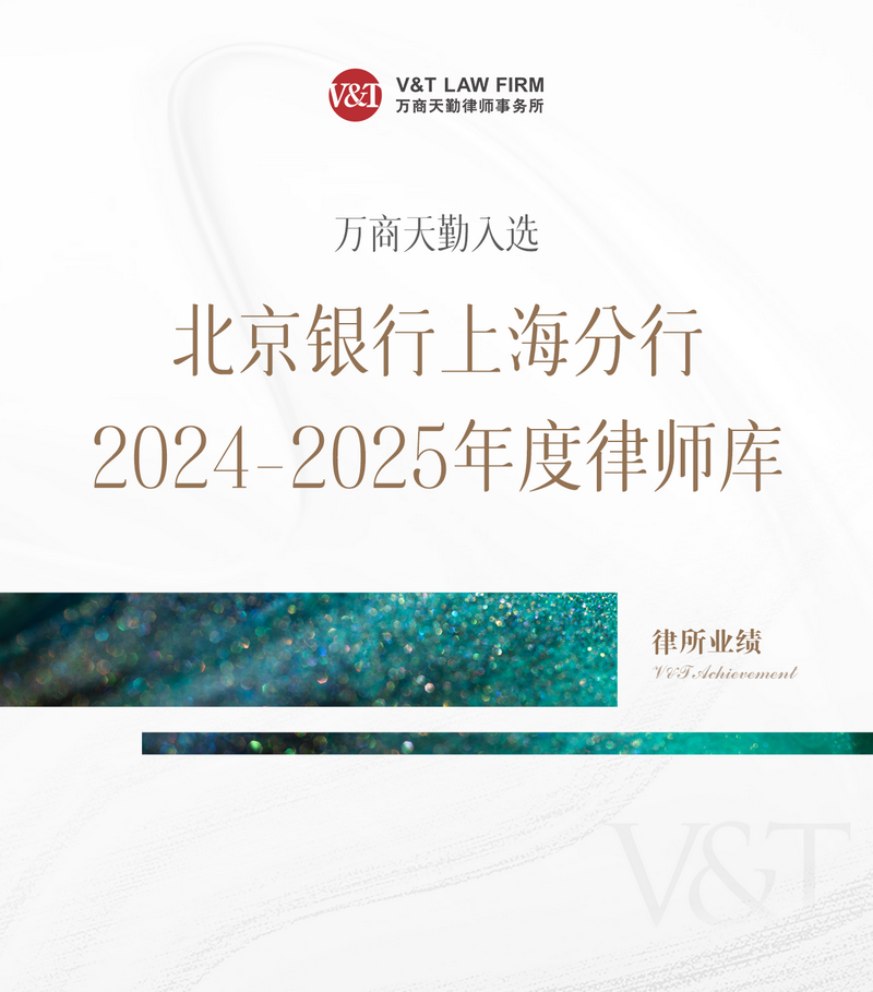 V&T 业绩|万商天勤入选北京银行上海分行2024-2025年度律师库
